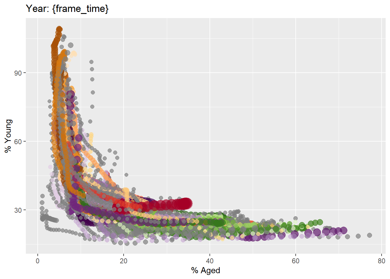 ggplot(globalPop, aes(x = Old, y = Young,