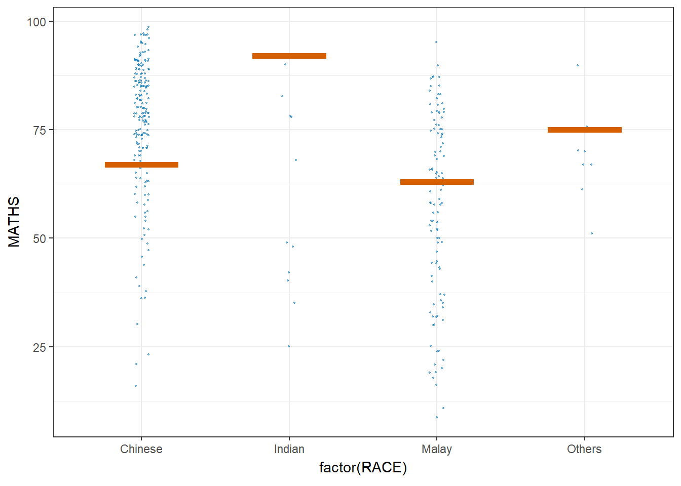 (aes(x = factor(RACE), y = MATHS))) +