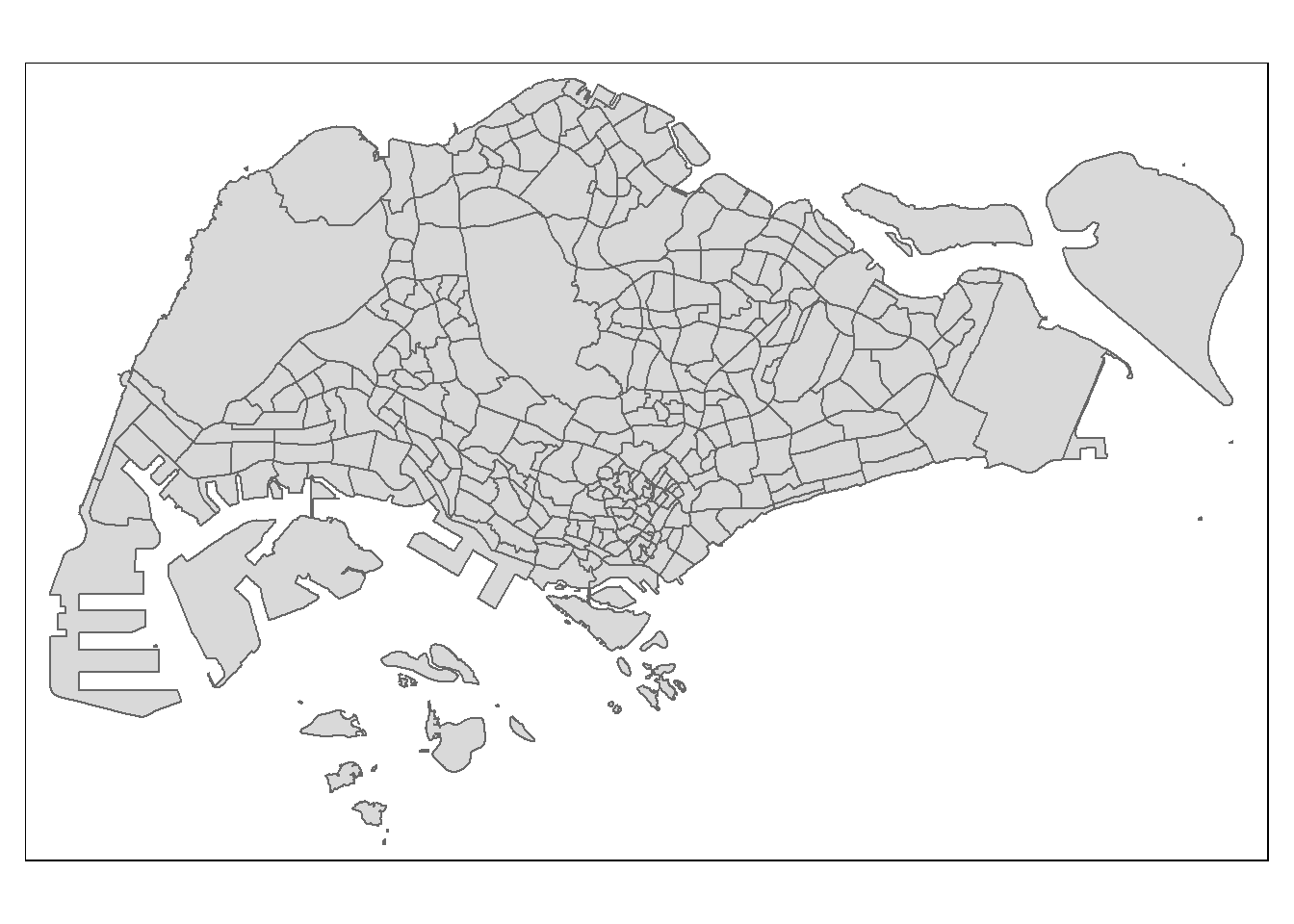 mpsz <- st_read(dsn = "data/geospatial",layer ="MP14_SUBZONE_WEB_PL")Reading layer `MP14_SUBZONE_WEB_PL' from data source
