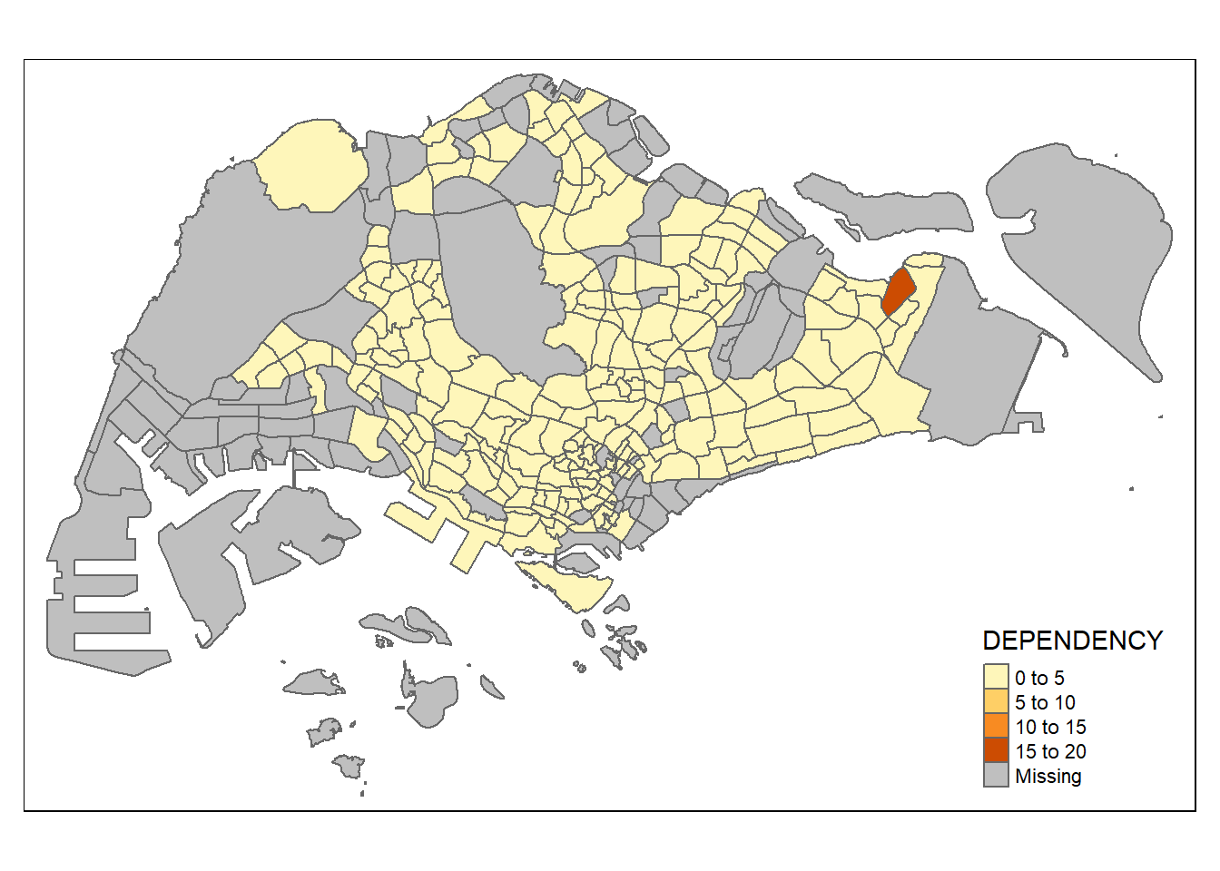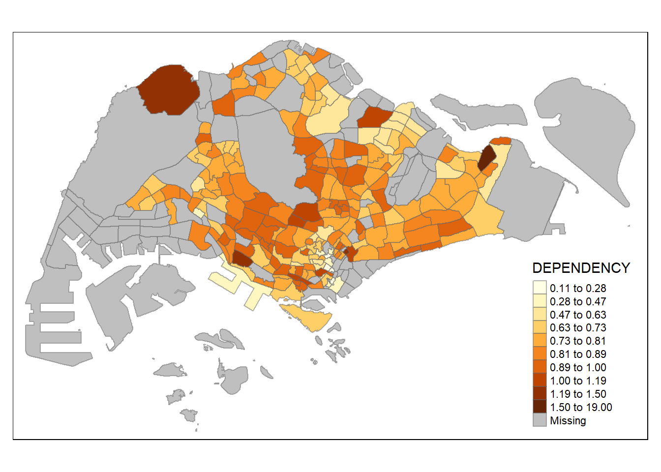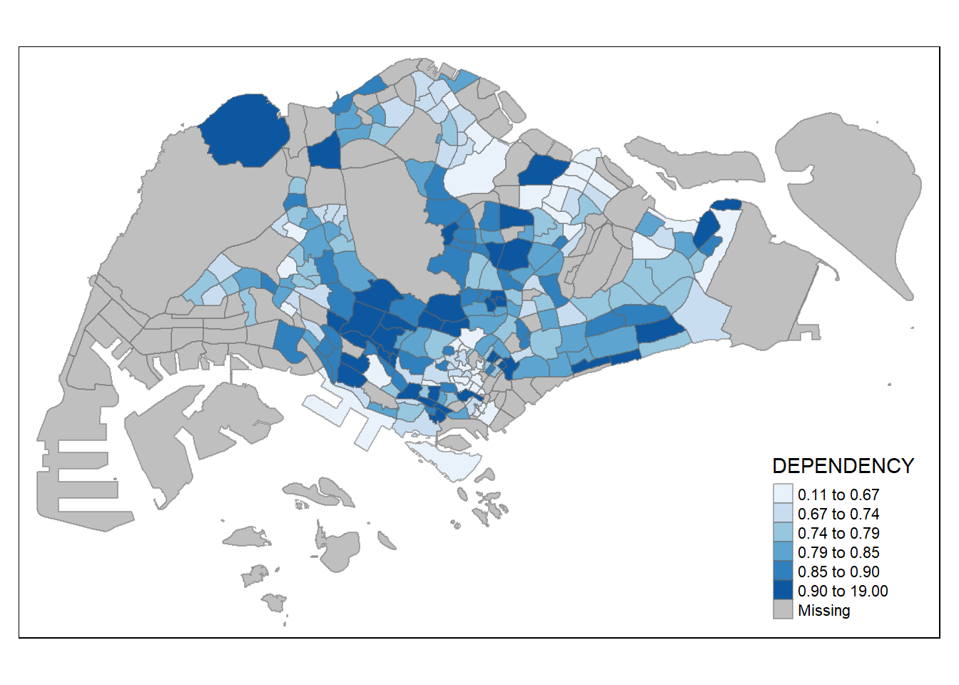 tm_layout(main.title = "Distribution of Dependency Ratio by planning subzone",
