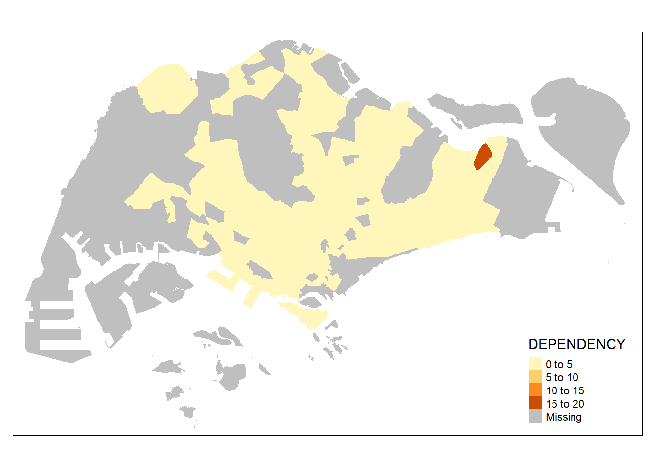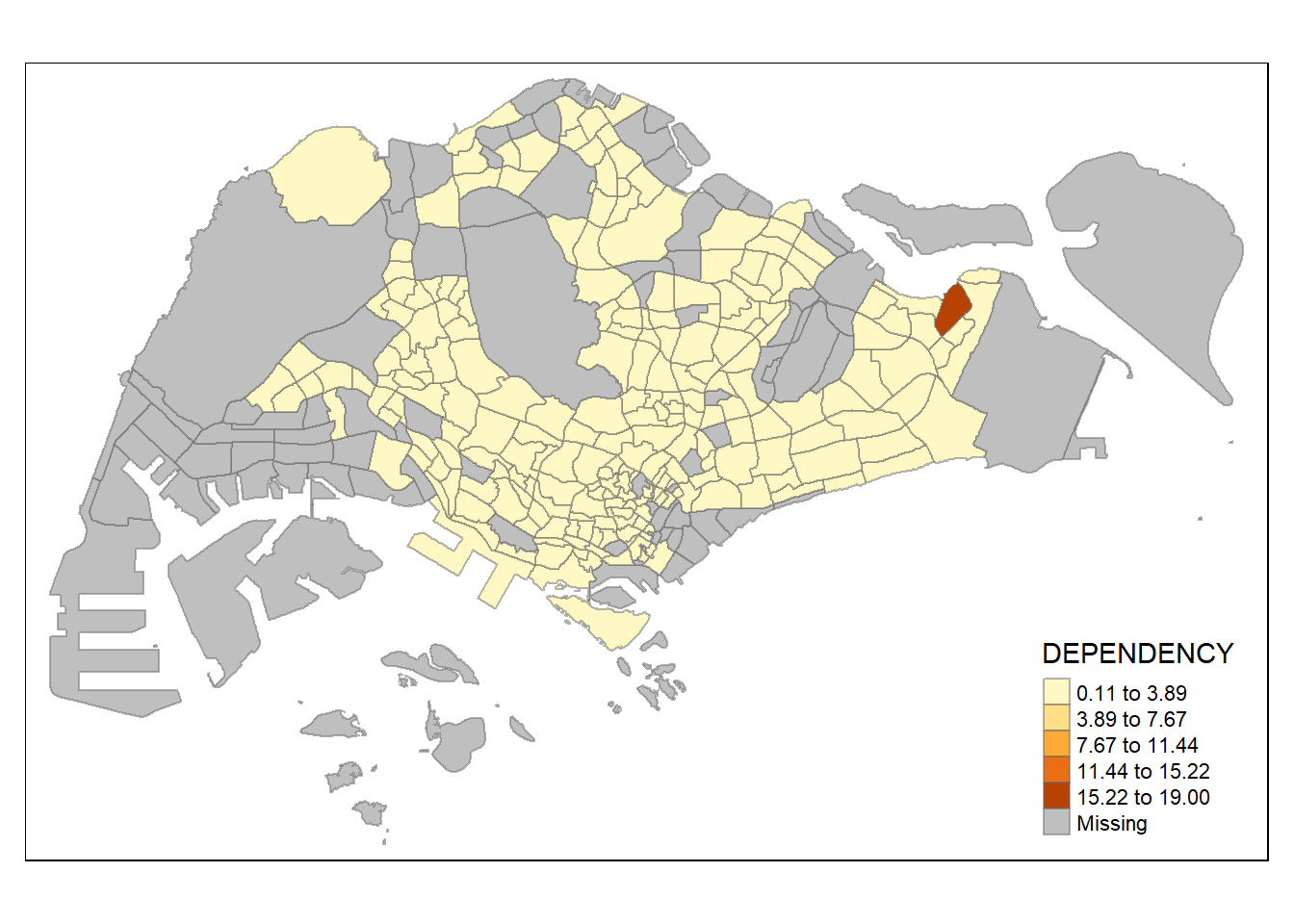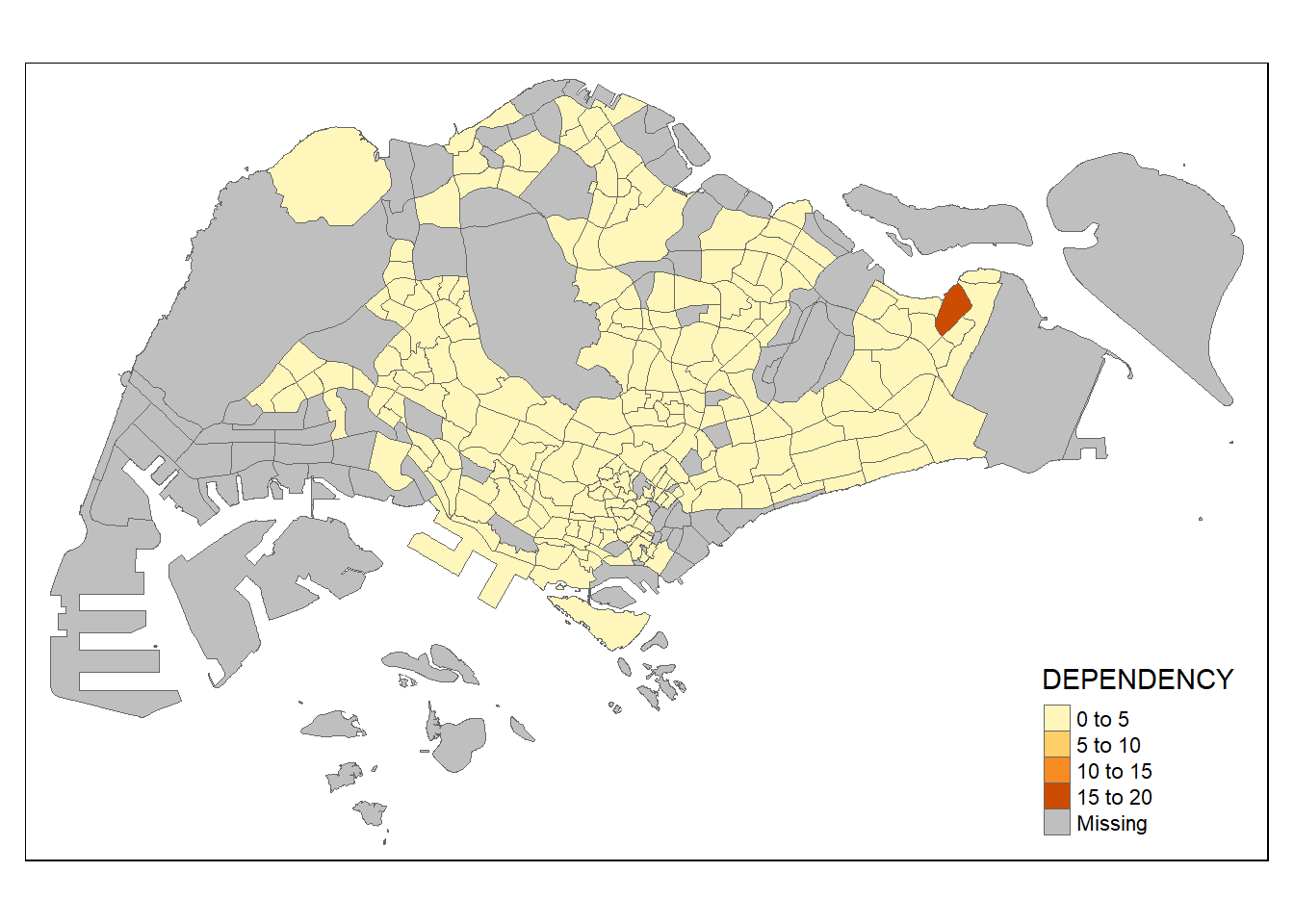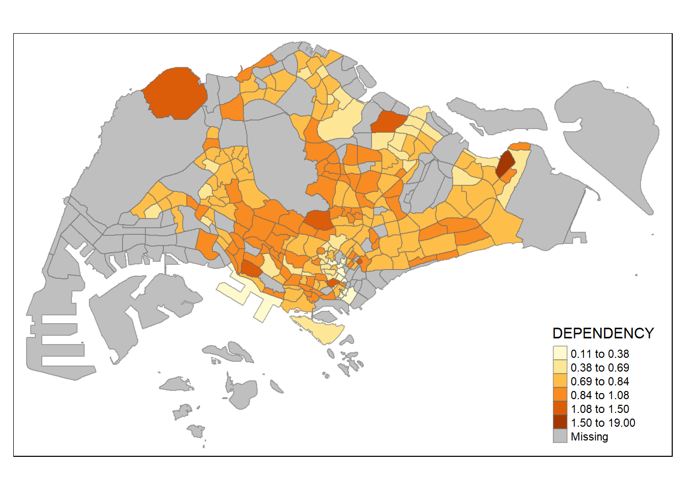 tm_layout(main.title = "Distribution of Dependency Ratio by planning subzone",