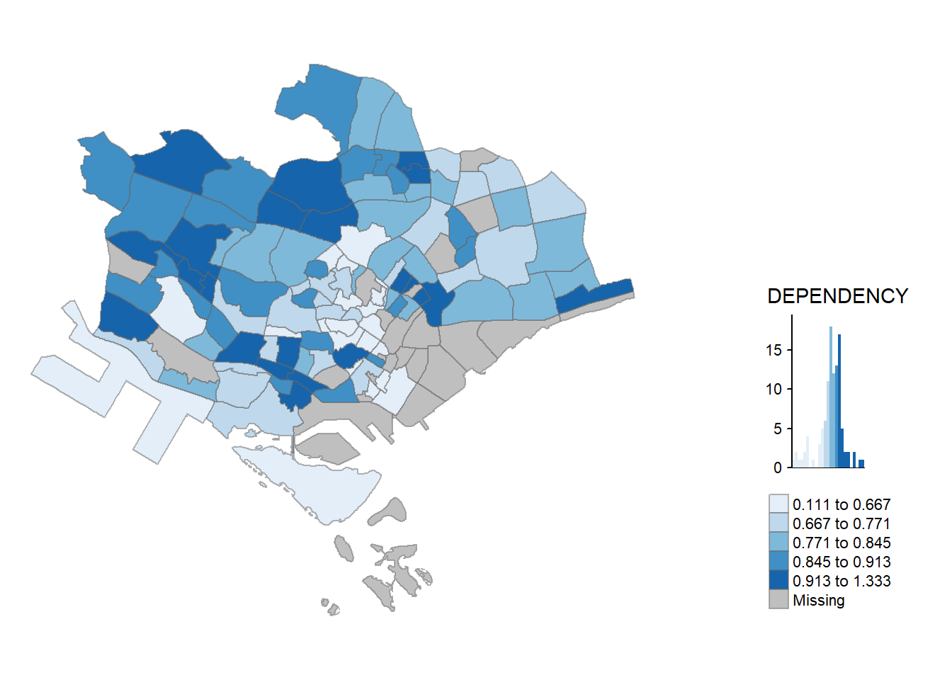 summary(mpsz_pop2020$DEPENDENCY) Min. 1st Qu. Median Mean 3rd Qu. Max. NA's