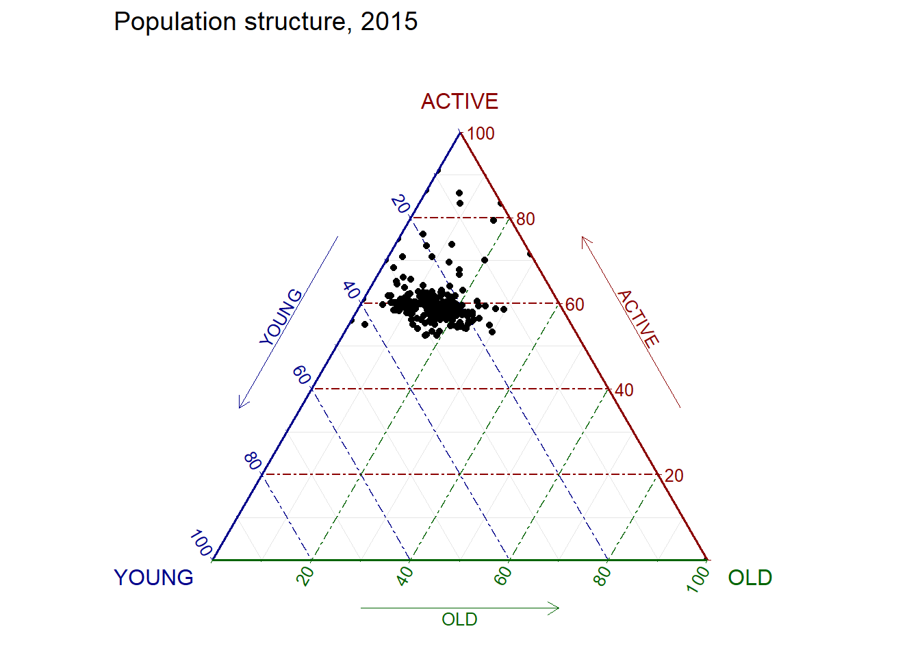 ggtern(data=agpop_mutated, aes(x=YOUNG,y=ACTIVE, z=OLD)) +
