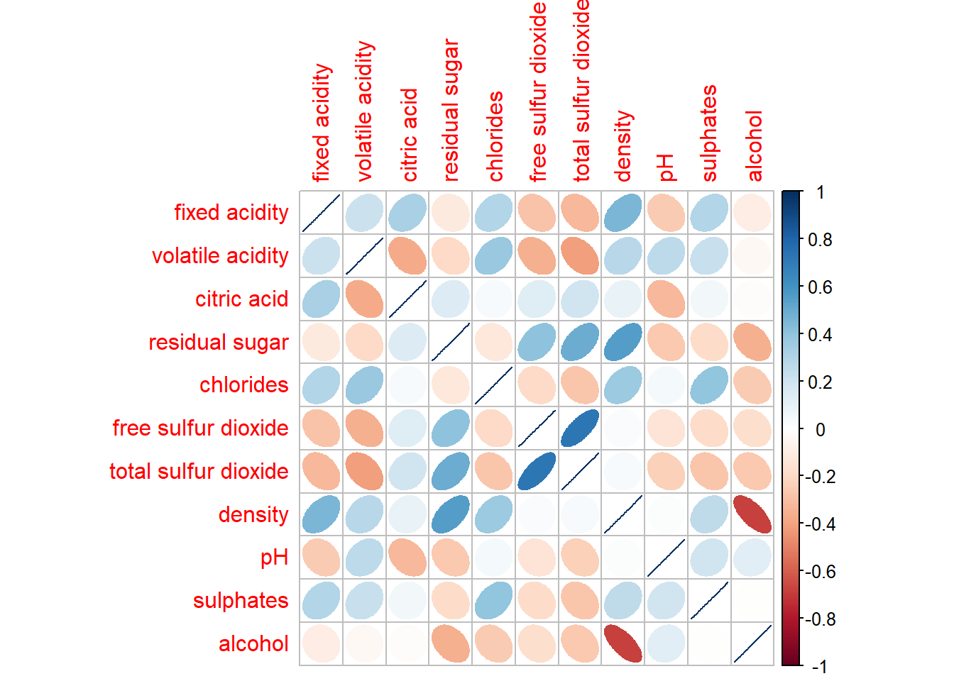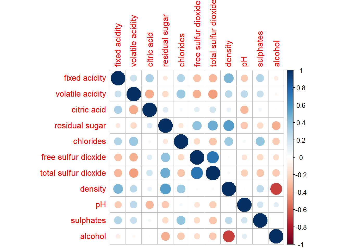 Before plotting a corrgram using corrplot(), need to compute the correlation matrix of wine data frame.